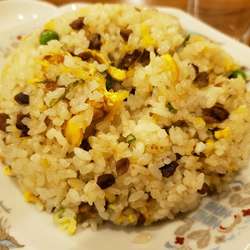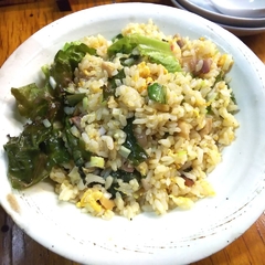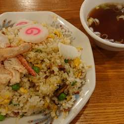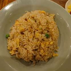ボリュームはまあまあ。パラパラで硬めの仕上がり。アツアツじゃないし水分が飛び過ぎてる感じだし作り置きなのかな。味はちょうどよい塩加減で美味しい。